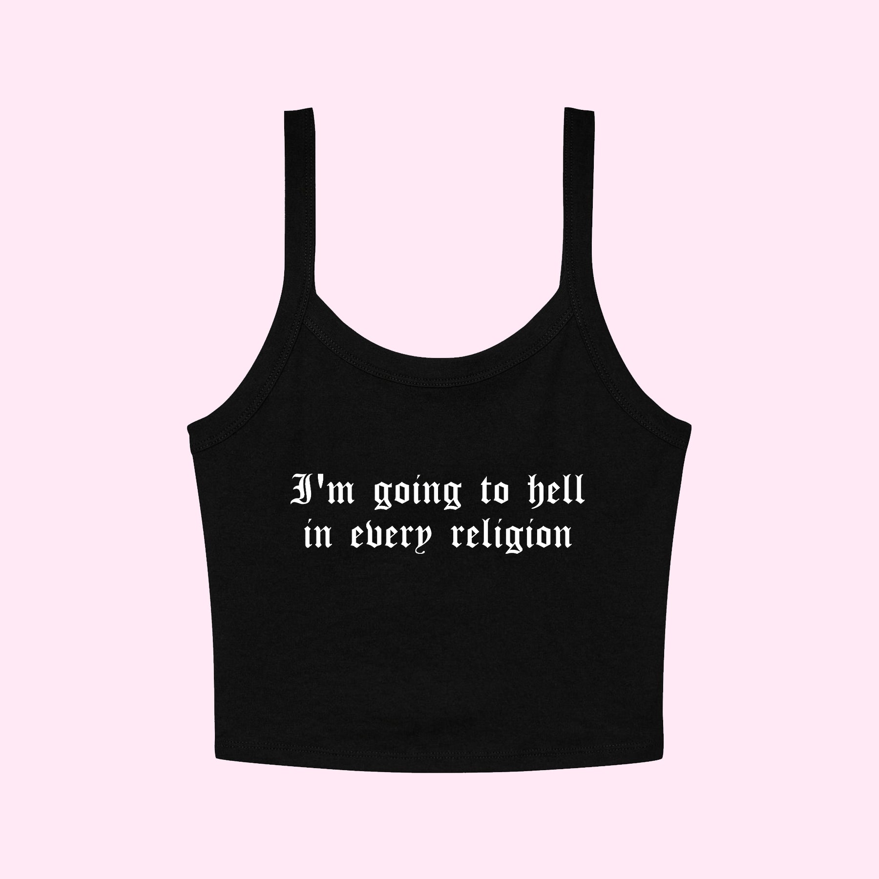 I'm Going To Hell In Every Religion cropped tank top
